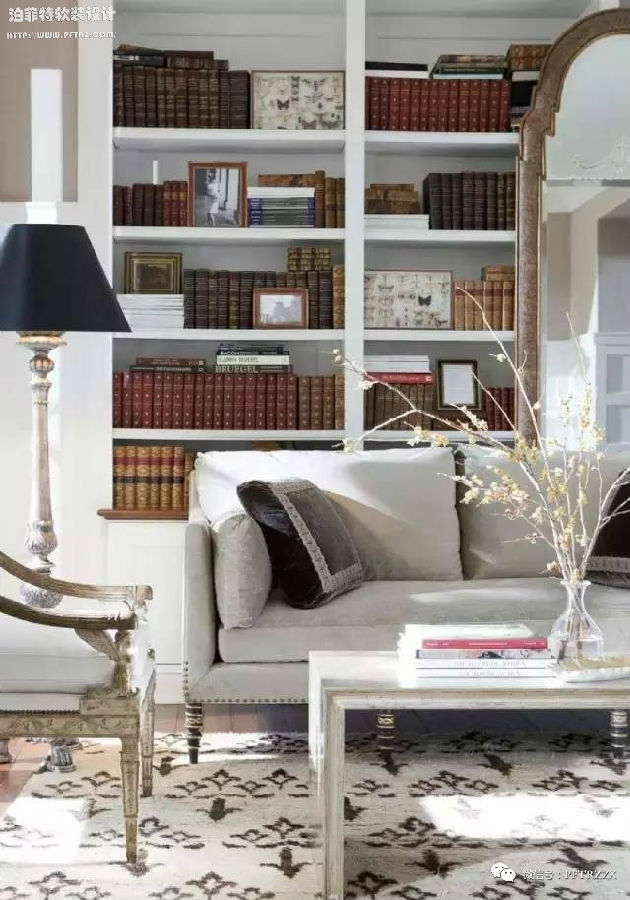 美式风格搭配常常用仿古艺术品进行特显文化艺术气息,被翻卷边的古旧书籍,动物的金属雕像等等,这些东西搭配起来呈现出深邃的文化艺术气息。